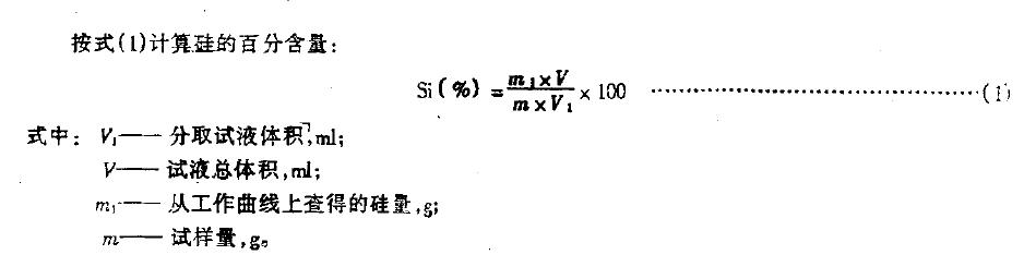 4.3分別用水稀釋至體積為35m1,以下按5.3.3及5.3.5操作。以未加硅標準溶液之顯色溶液為參比,測量其吸光度。以硅量為橫坐標,吸光度為縱坐標,繪制工作曲線。
